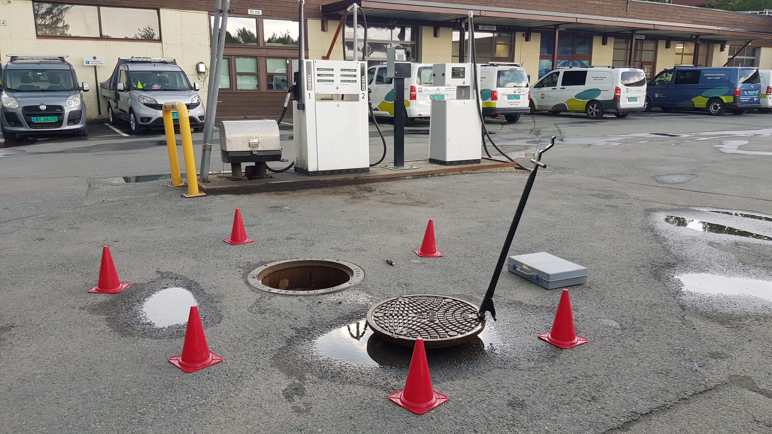 The images above show a facility where design errors made during construction required extensive excavation. We carried out a tank cleaning and filtered the fuel on its way back into the tank.